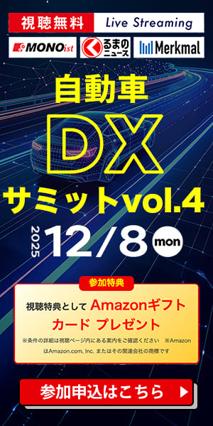 自動車産業のさまざまな課題をデジタルトランスフォーメーション(DX)によって解決した事例を紹介する無料オンラインセミナー「自動車DXサミット vol.4」が、2025年12月8日(月)に開かれる。